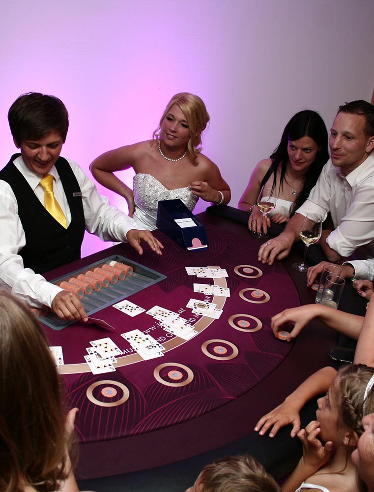 Wir machen mit unserem Casino Tisch das Brautspiel und sammeln auf elegante Art und Weise für euch. Viel lustiger als die üblichen Hochzeitspiele und perfekt auch für alle Nicht-Tänzer.